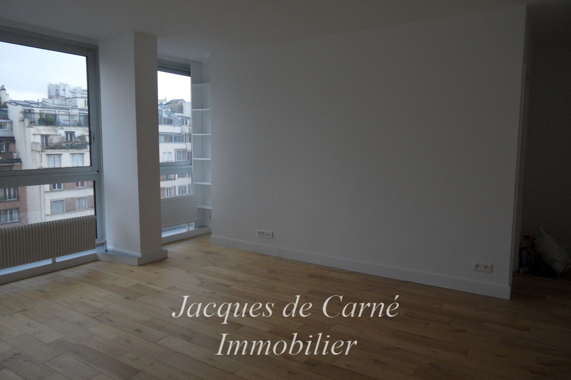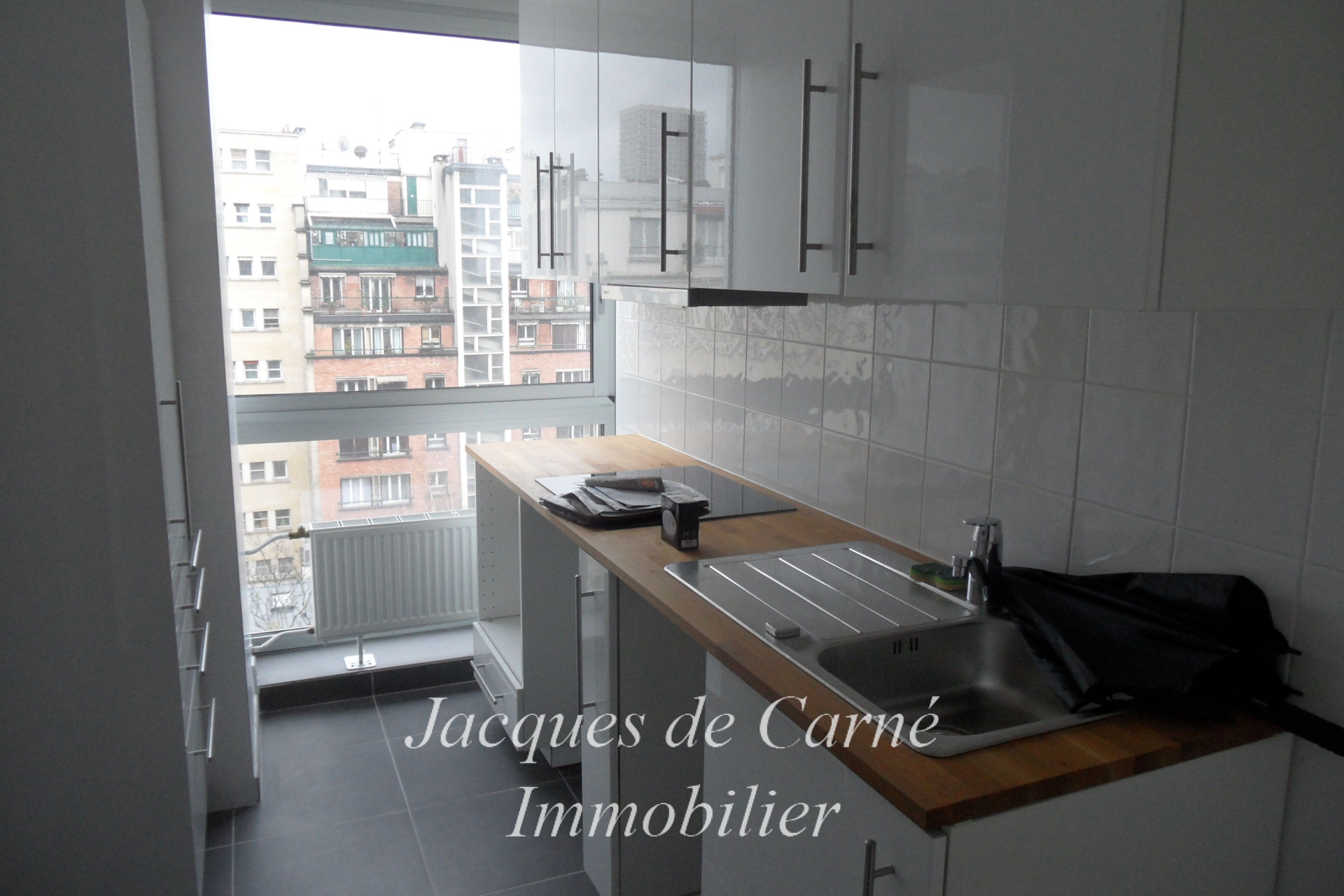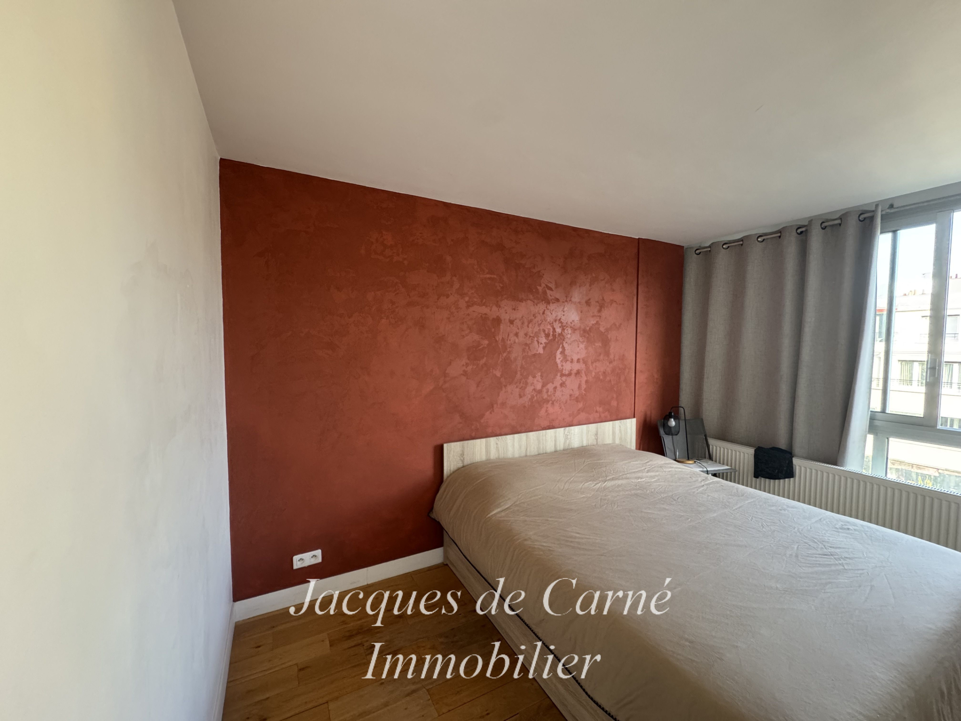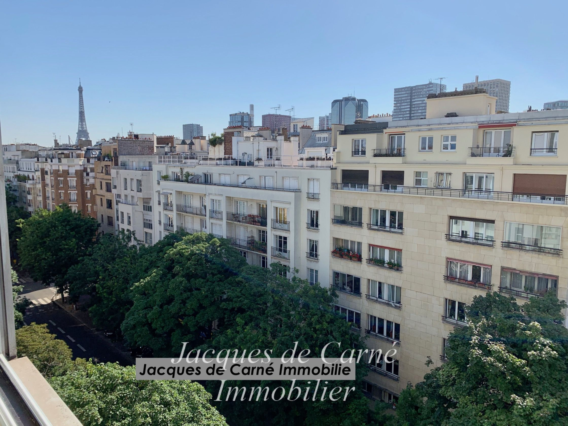 PONT MIRABEAU° 2 pièces de 50 m² situé au 8ème étage d'un immeuble construit en 1960 par GINSBERG.. Appartement calme et lumineux. Entrée avec placards. Un séjour en parquet chine massif, la grande baie vitrée ouvrant sur la rue sans vis à vis. La cuisine est aménagée (plan de travail, placards hauts/bas, plaque d'induction, hotte). Chambre donnant sur la rue. Le Chauffage de ce bien est collectif et fonctionne par radiateur, l'eau chaude est également collective.