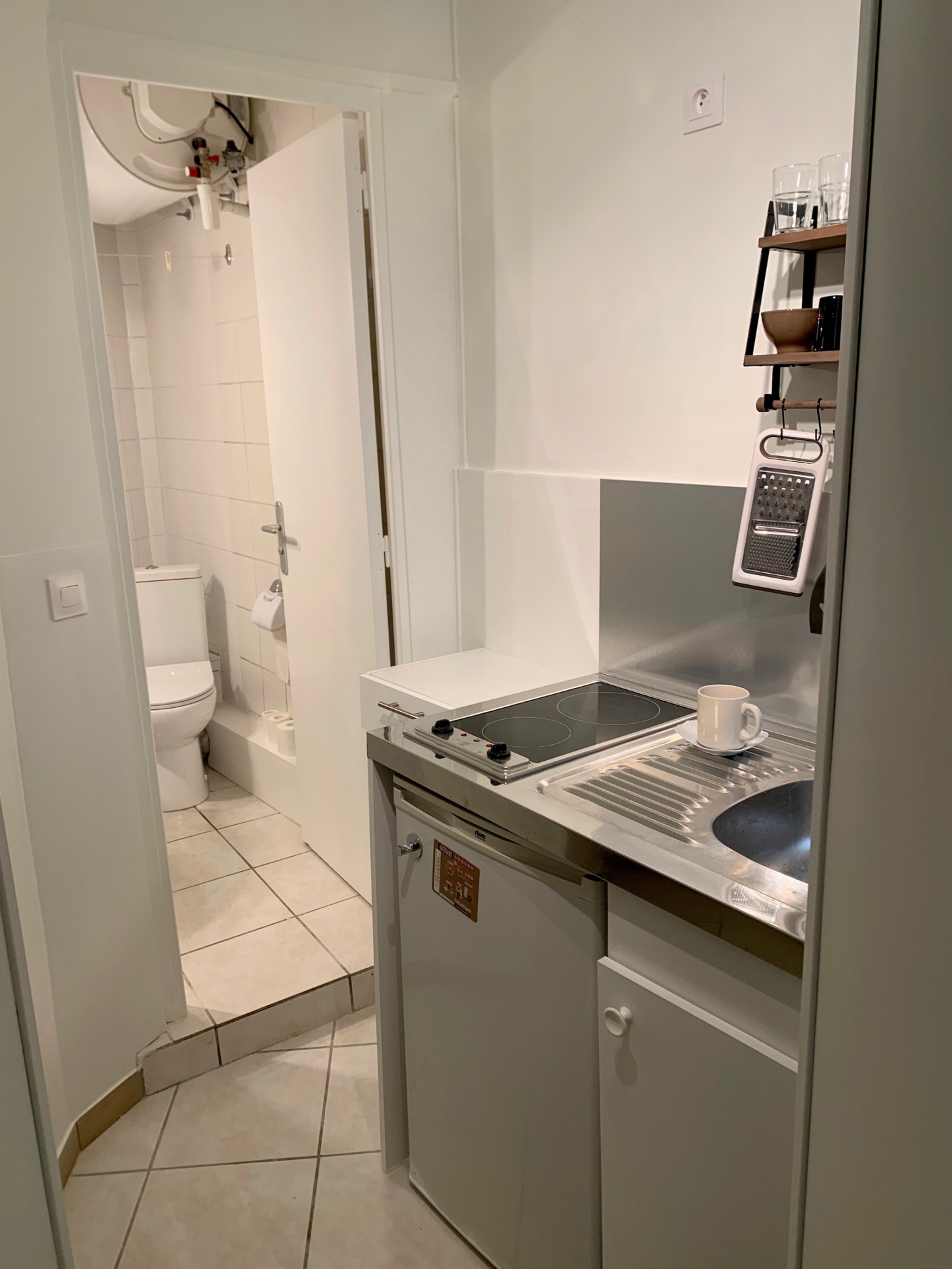 studioM°ALESIA STUDIO MEUBLÉ RDC situé rue Montbrun à 3mn du métro. Quartier trèscalme et residentiel. Appartement qui donne ur la cour fermée de l'immeuble. Séjour avec un canapé lit, une penderie, une cuisine équipée avec fenetre ( plaque 2 feux, réfrigérateur, meubles, lave-linge, une salle de douche avec WC, peu de lumière). Eau chaude et chauffage individuels éléctriques. Disponible le 19 décembre prochain.